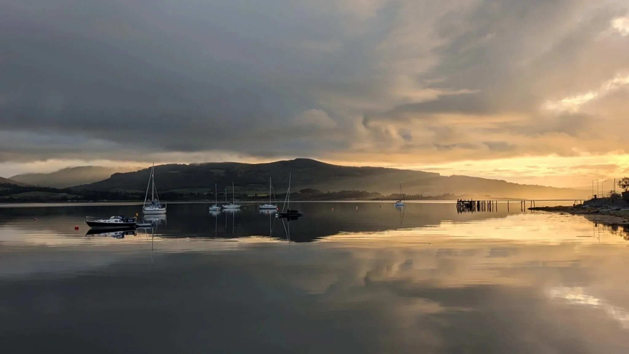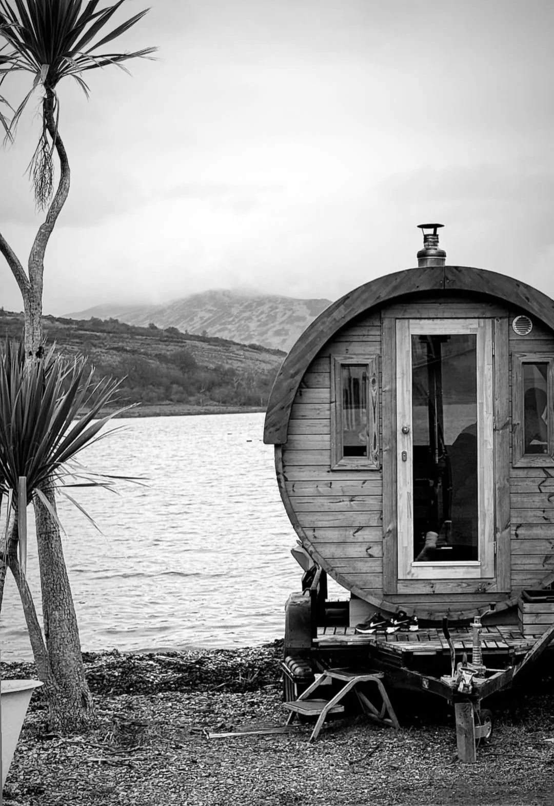 Caladh sauna is located in the village of Port Bannatyne, Isle of Bute. Port Bannatyne is set around a horseshoe bay with views across the Kyles of Bute to the Cowal peninsula on the mainland. Our mobile woodburning sauna sits by the ports quay, which was built in 1801 to allow access for trade and passanger vessels. As you warm yourself up in the sauna after taking a dook in the water you will be able to relax while looking at the ever changing landscape.